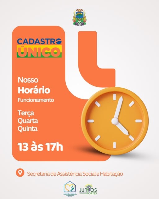 O Cadastro Único é fundamental para que famílias em situação de vulnerabilidade tenham acesso a benefícios sociais. Compareça nos dias e horários informados e mantenha seus dados sempre atualizados.
